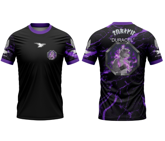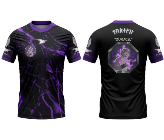 Denne trøje er en del af Pyzaras tredje samarbejde med Jonas "Duracel" Troest og blev designet op til hans kamp ved MMA Galla Vol. 20 i Glostrup, hvor han mødte den italienske fighter Valentino "The Street" Riva. Trøjen bygger videre på designet fra det forrige samarbejde, men med en ny balance mellem sorte og lilla elementer. Fronten er holdt mere enkel med en sort base, mens ryggen prydes af Jonas' karakteristiske logo og et dynamisk lilla marmoreret mønster